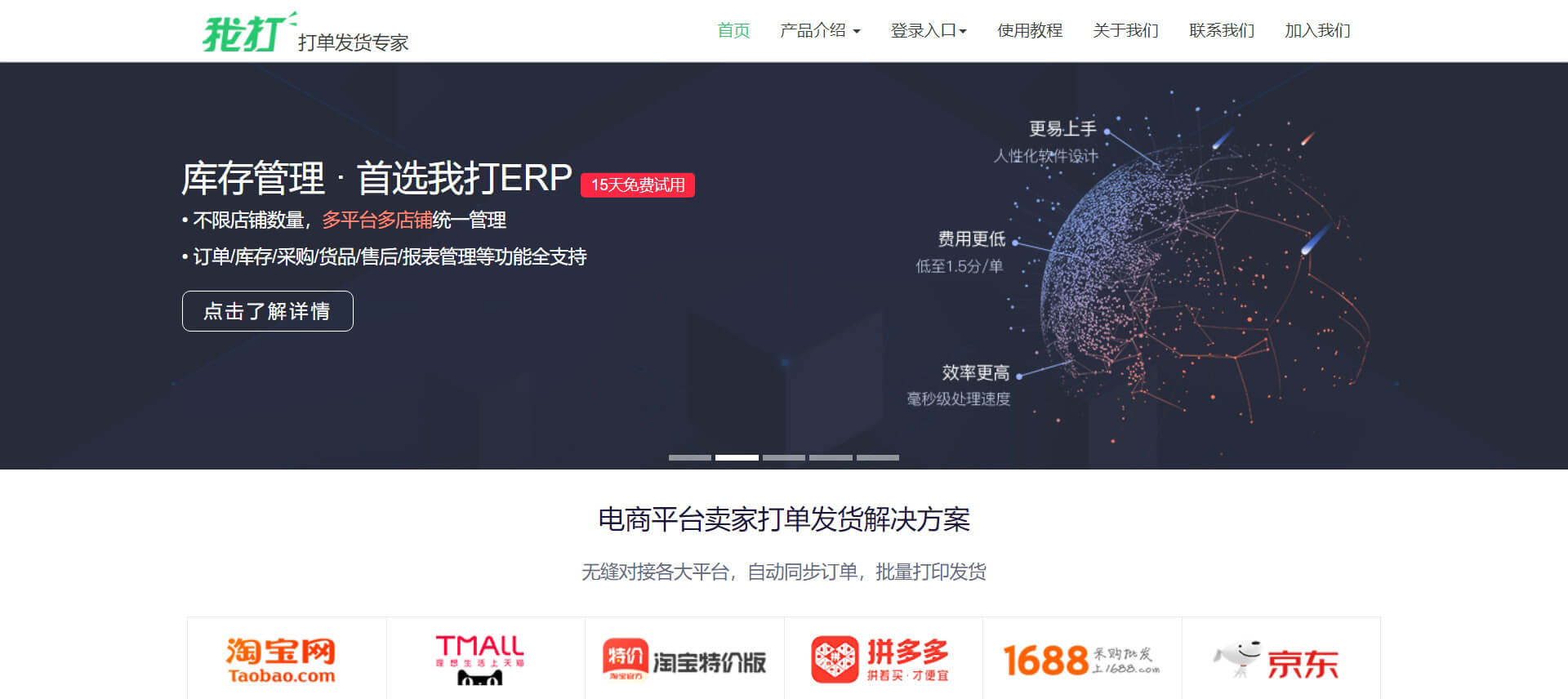 现在支持超20家电商平台,服务45万卖家,日处理订单量超2000万。我打致力于为卖家解决订单管理的困扰。 让卖家轻松处理订单、及时打单发货,是我们的奋斗目标。